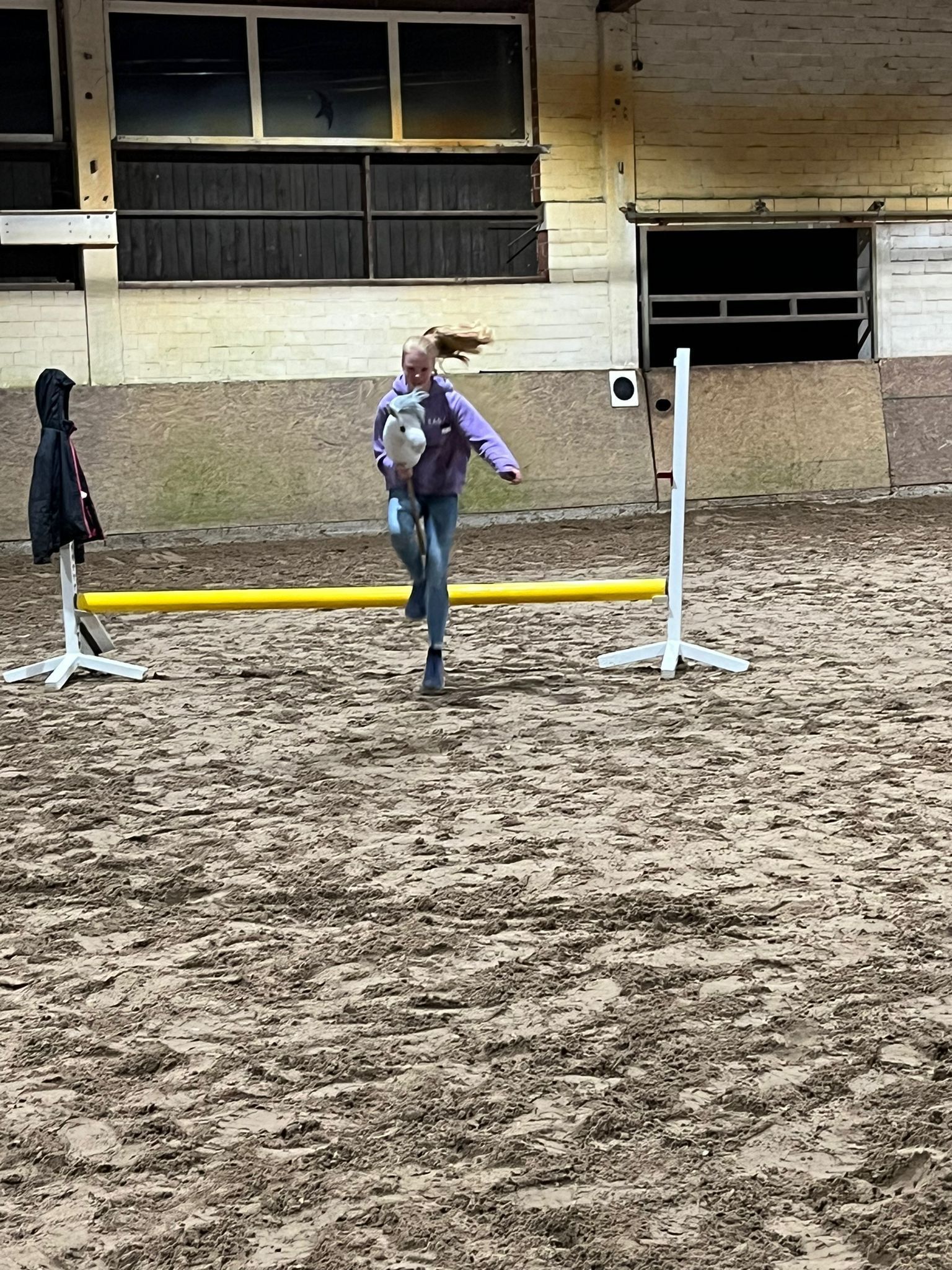 Danach wurde mit dem Steckenpferd ein Springparcour in der Reithalle auf Zeit durchlaufen.