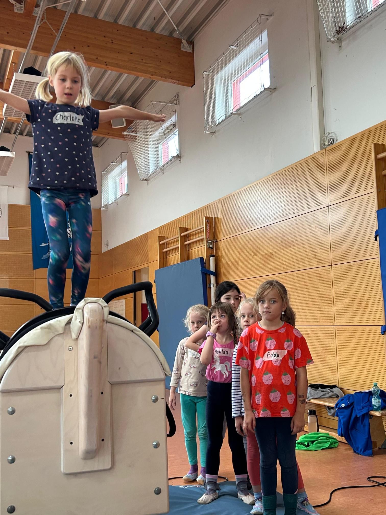 Ein besonderes Highlight war der Ausflug nach Fürstenau: Dort wartete ein sogenannter „Movie“, ein bewegliches Holzpferd, das die Bewegungen eines echten Pferdes simuliert. Diese Gelegenheit nutzten die Kinder, um ihre turnerischen Elemente in einer kontrollierten Umgebung zu verfeinern.